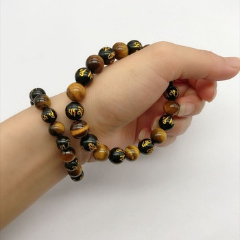 ธรรมชาติ Tiger Eyes สร้อยข้อมือหินยืดหยุ่นขนาดคลาสสิกจีนสร้อยข้อมือสำหรับชาย
